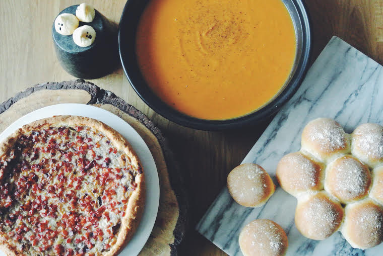 I ended up having a bit of an autumn baking afternoon and made roasted sweet potato and coconut soup, soft bread rolls and little meringue ghosts! It was a lot of fun being back in my little kitchen after being away from it for so long!