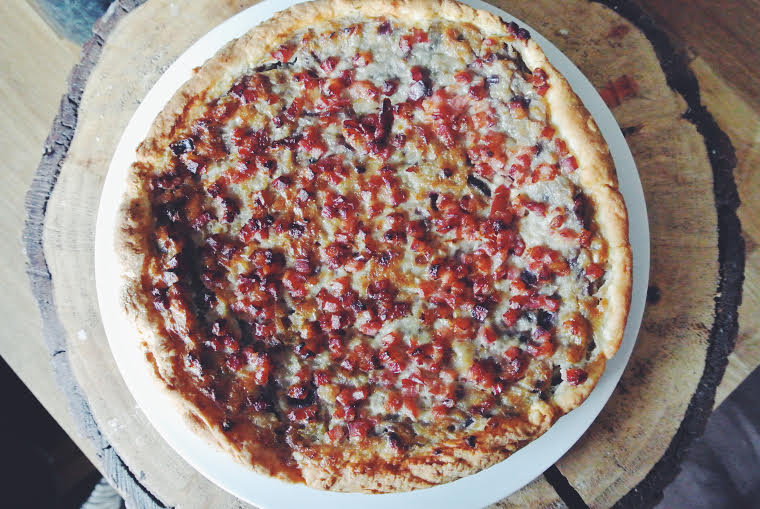 Greta’s challenge for me this month was Zwiebelkuchen (onion tart). I have seen this popping up in all of the bakeries around here recently, so when Greta sent me the recipe I was very excited!