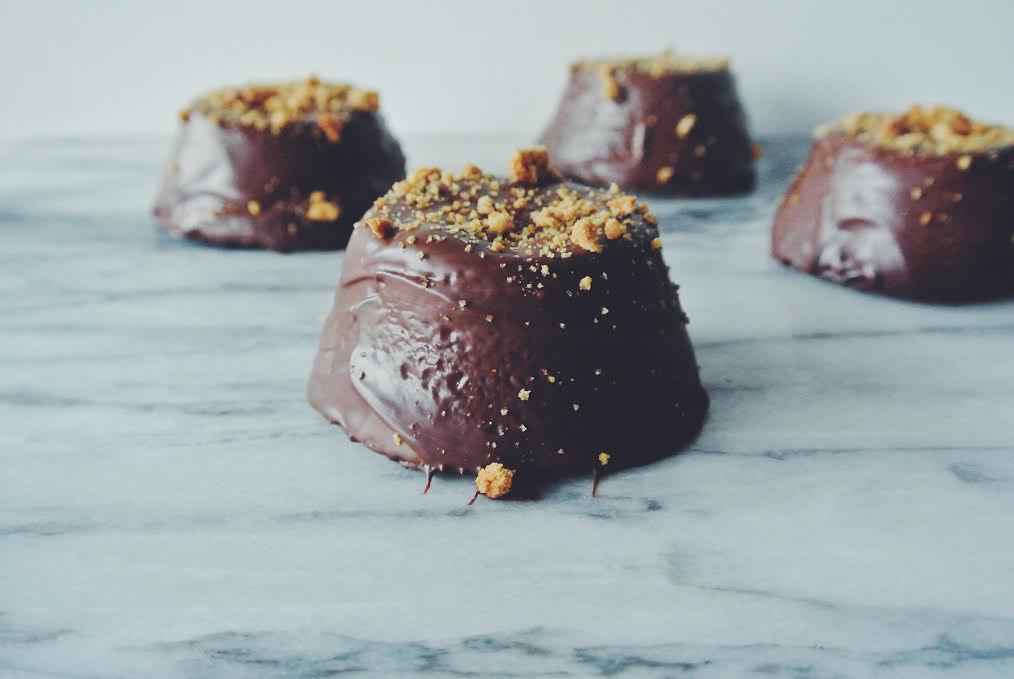 Before the chocolate is completely dry, decorate with crumbled gingerbread!
