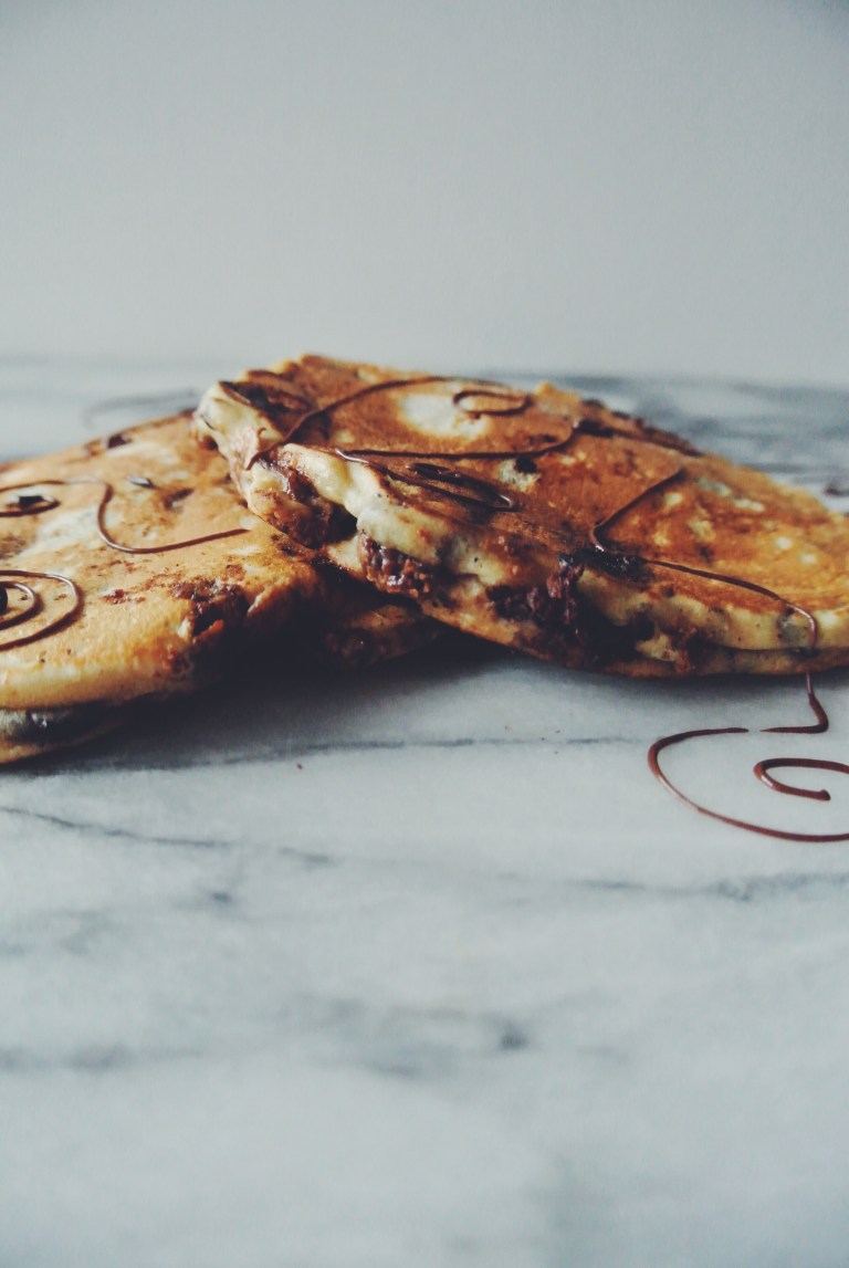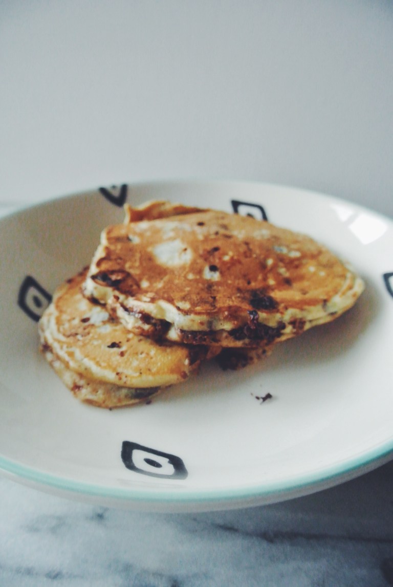 As it is Pancake Day tomorrow and as the weather has been so miserable and grey for the last few days, I thought I would share my chocolate chip pancake recipe!