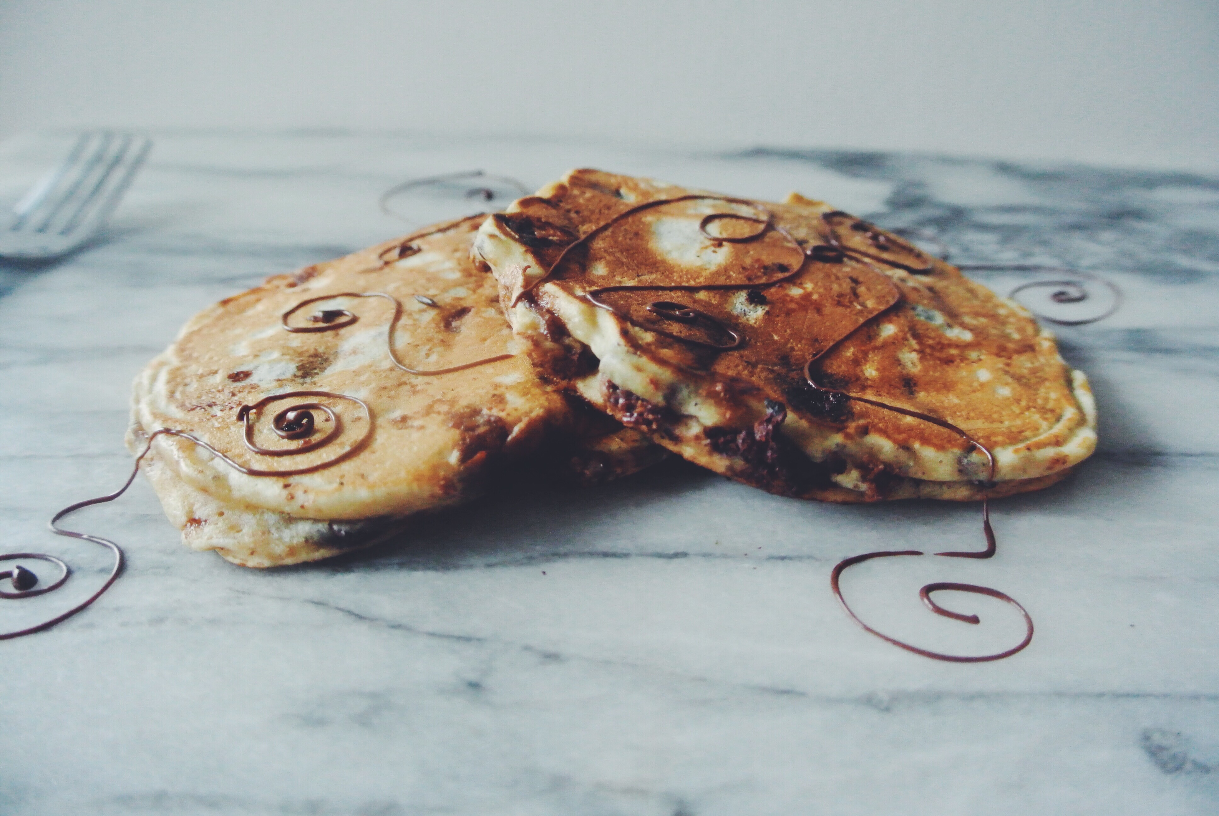 I have my first practical test next month at school, it is for chocolate glaze piping. So I thought I would take the opportunity to practice on my pancakes! I took these pictures last month and thankfully my piping skills have become much better since then!