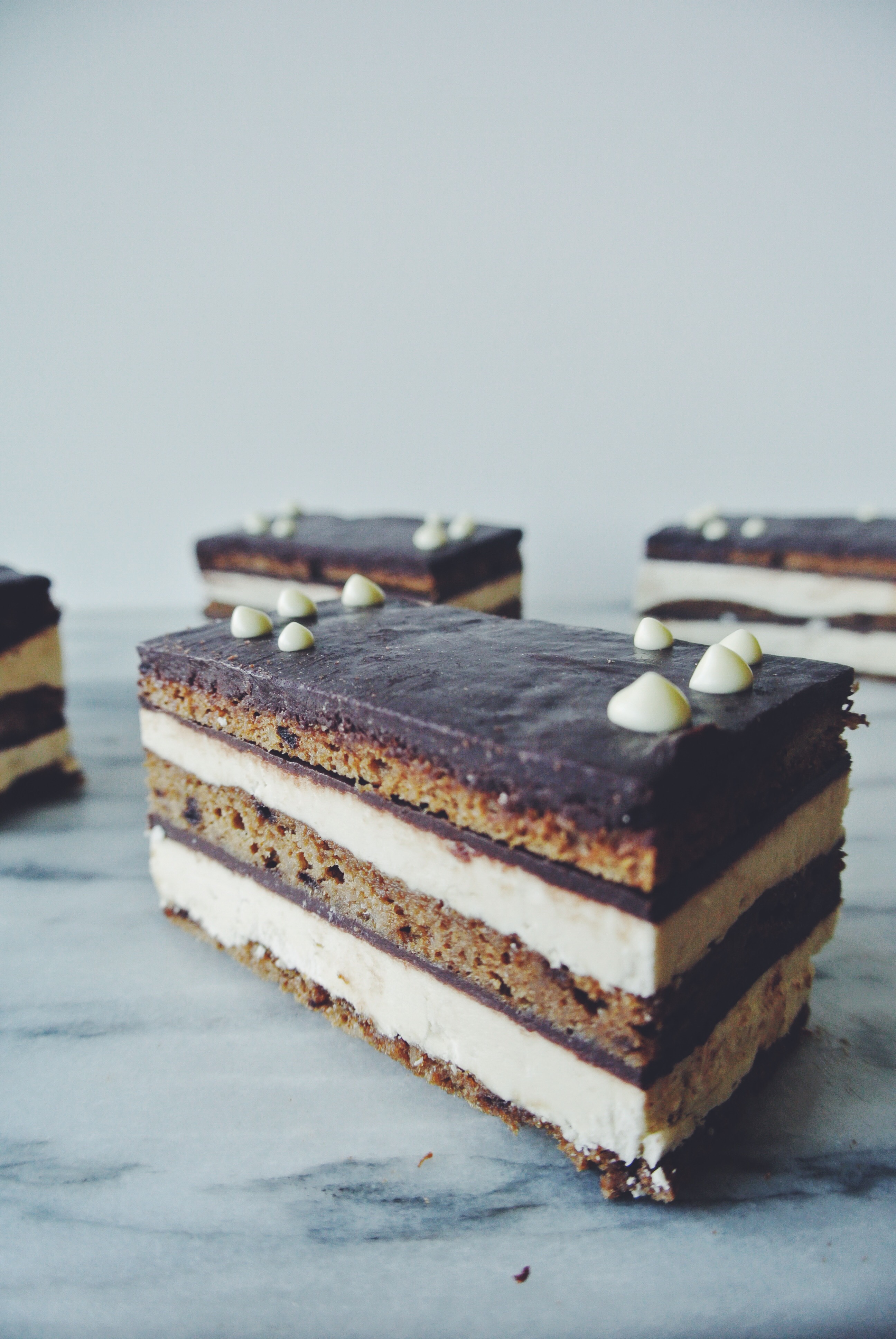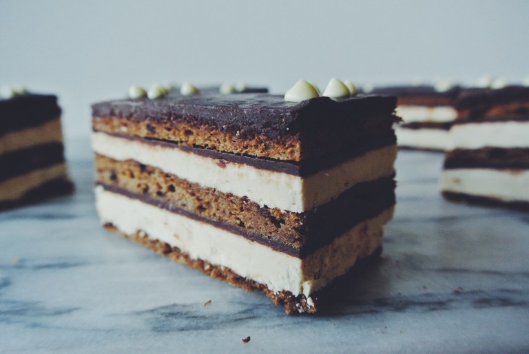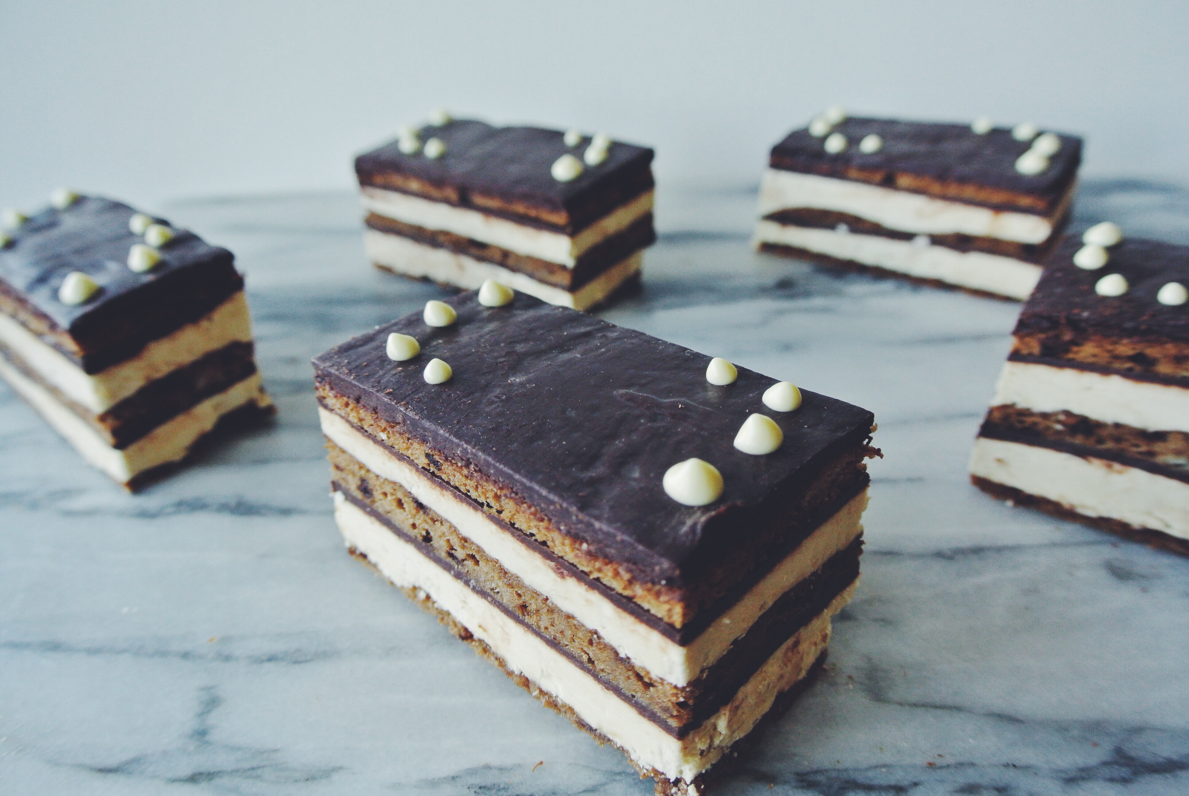 If you don’t know what Gateau Opera is, it is thin layers of almond sponge cake, coffee butter cream and chocolate ganache!